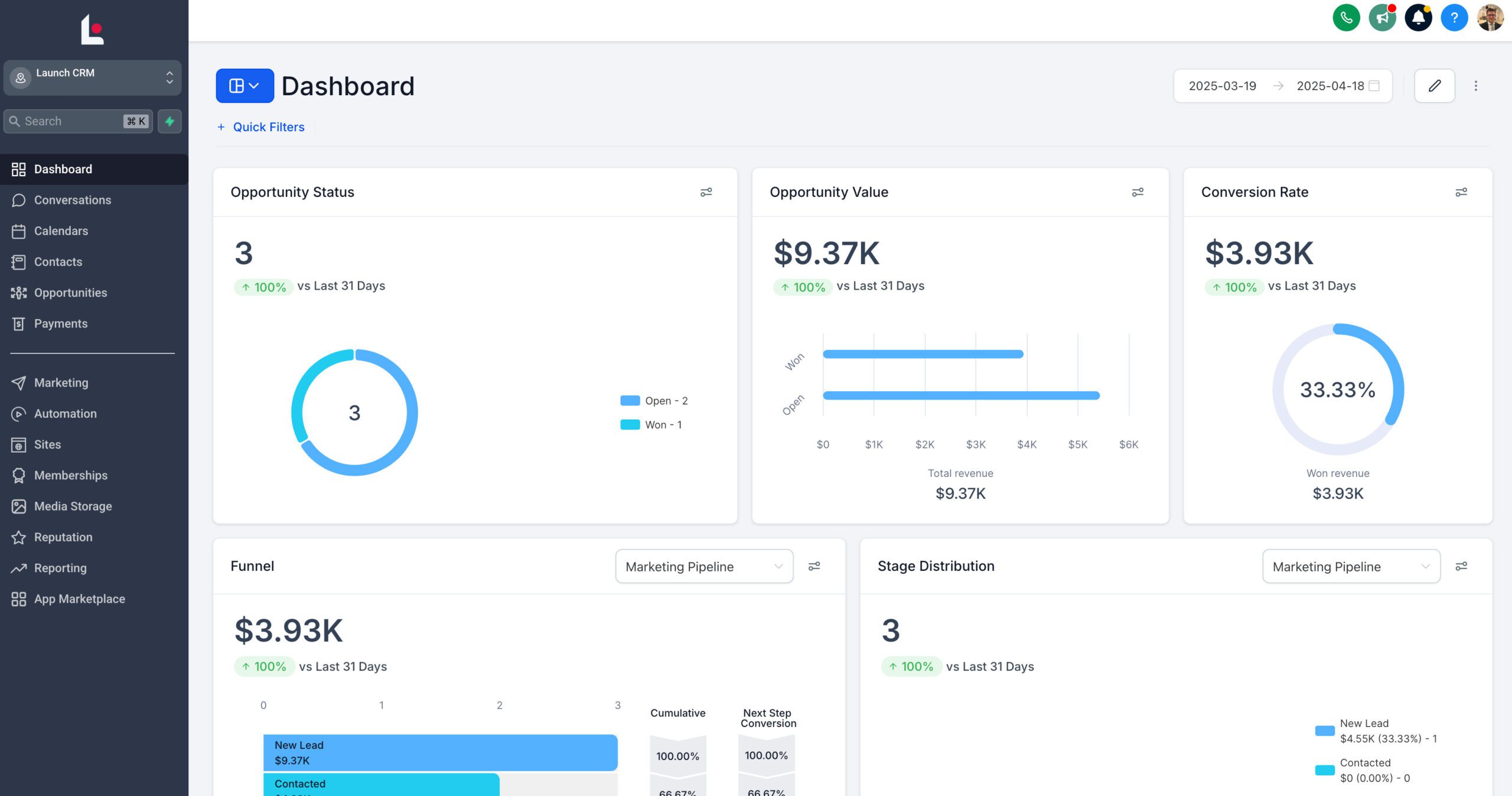 Launch CRM brings your marketing, sales, and customer communication together in one simple dashboard.