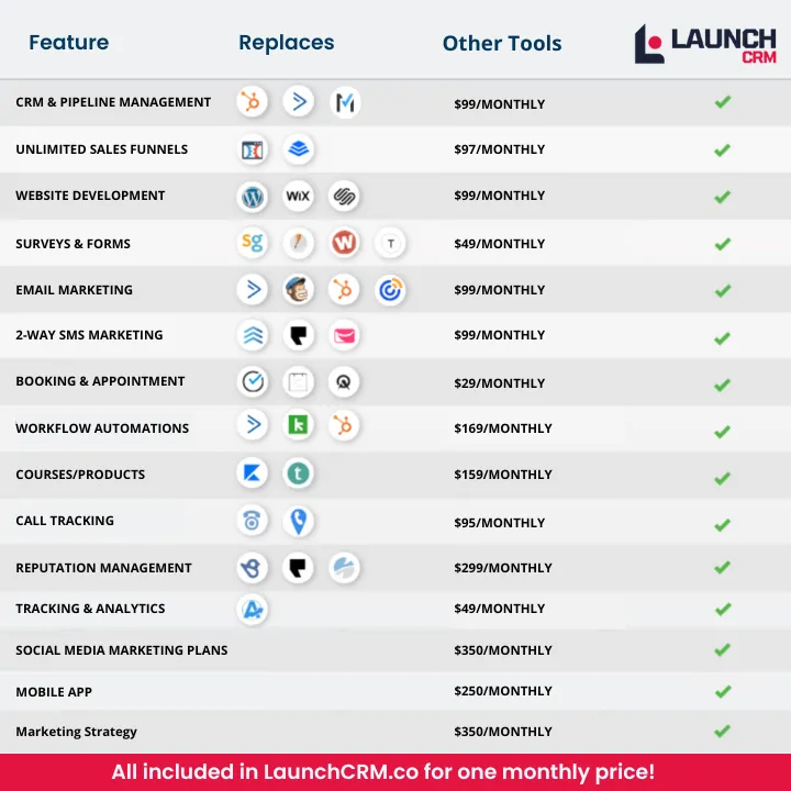 Launch CRM is an all-in-one platform that replaces the stack of tools you use to run your business.